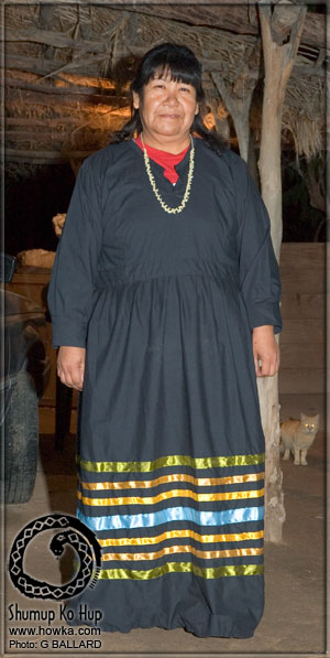 Aronia Wilson makes Cocopah ribbon dresses, traditional ribbon shirts, ribbon bags for gourd rattles and beaded pins. She is the sister of Nick Wilson.
