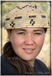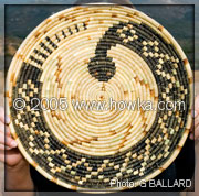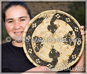 Aurelia Ojeda Melendrez, a famous California Indian basket weaver, weaves coiled juncus baskets and willow acorn storage baskets. She is famous for her stunning coiled rattlesnake basket patterns and Kumeyaay basket hats.