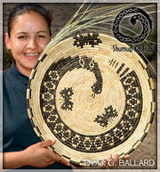 Elvia Silva, Kumeyaay basketmaker, weaves coiled juncus baskets.