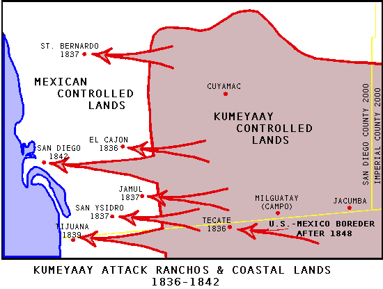 KUMEYAAY MAP 1836-1842 Kumeyaay Attacks Mexican San Diego