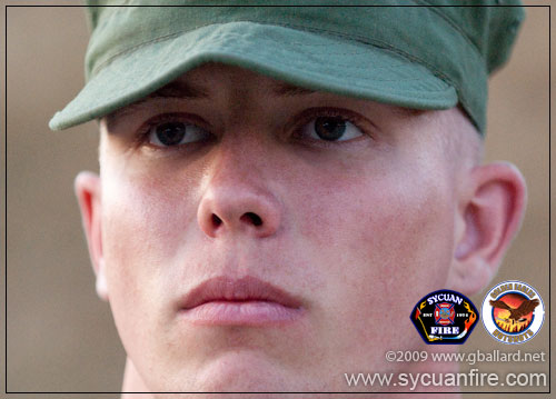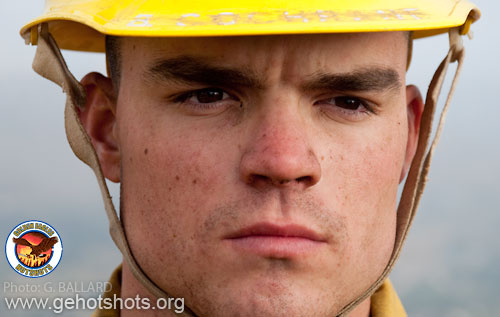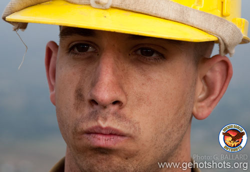 These are the tough fire-fighter faces of the young men as they participated in the challenging Sycuan fire training during hose lays up MF on Day Eleven, 1600 hrs.