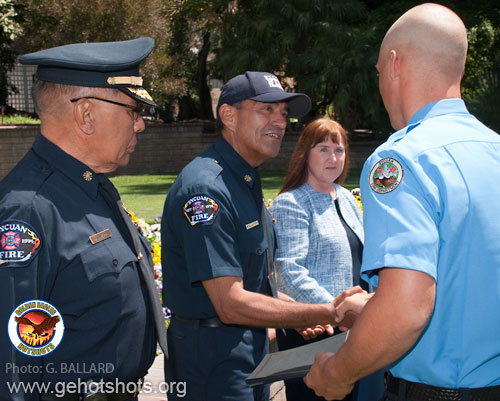 Chief Murphy presented the awards, then Chief Villalpando and Laurie Bell congratulated the new fire fighters.
