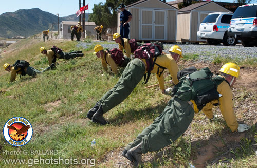 Superintendent Juan Mendez, Golden Eagles Interagency Hotshot Crew (IHC), was on hand during check in and kept the trainees on their toes (and pumping them out).