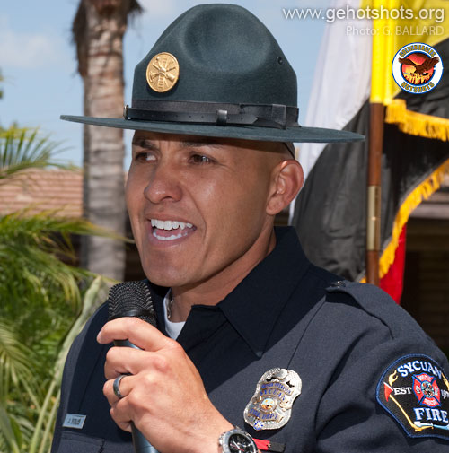 Sycuan tribal member Hank Murphy: Chief and founder of the Sycuan Fire Department, addressed the recruits and their families, thanked the academy staff, and declared the recruits "Fire Fighters."