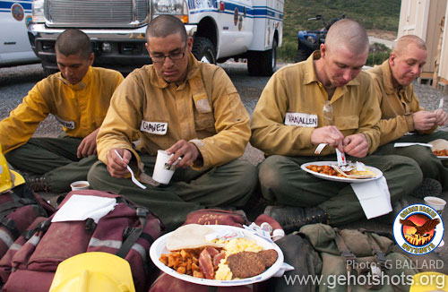 NIGHT OPS Here's where I found the fire academy on April 14th at 0400 hours hunkered down atop MF Mountain after cutting line all night. DOWNLOAD HIGH-RESOLUTION BIA POSTER for more information about this awesome professional fire-fighting picture.