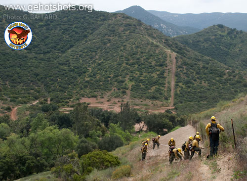MORNING HIKE Deputy Chief Villalpando leads the SYCFD fire academy trainees down off a steep Dehesa Valley mountain DOWNLOAD HIGH RESOLUTION BIA POSTER.