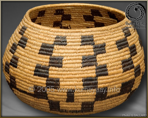 1920s INDIAN BASKET PicturesLARGE BOWL: Old 1920s antique California Indian basket coiled sumac and black dyed juncus... SIZE: Photos, Pictures , web site design by, GARY G BALLARD, San Diego. |