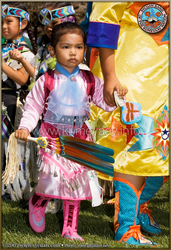 YOUNG GIRL Jingle DressYoung Native American girl dances in an authentic Jingle Dress costume, carrying feather fan, during the Sycuan pow wow in Southern California, San Diego County. Pow wow and Photography Sponsored by: