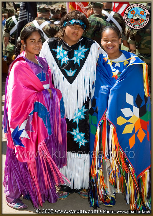 SYCUAN Head DancersAlexis Tucker (left), Ray Sandoval Jr. (Head Young Man), and Thea Hammond (Head Young Woman) were all pow-wow dancers in the 2005 Sycuan powwow. Powwow and Photography Sponsored by: