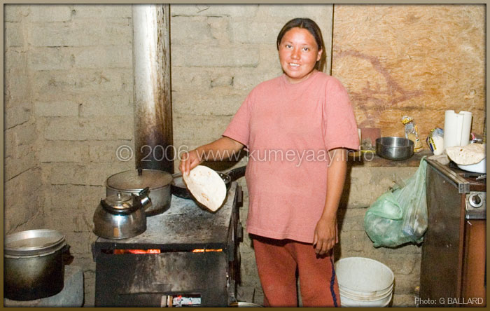YOUNG INDIAN MOTHERPai-Pai young Indian mother warms handmade tortillas on a wood-burning cook stove, Mexican Indian community of Santa Catarina, Baja California, Mexico. Photos, Writing and Web Page Design Contributed by webmaster, GARY G. BALLARD |
