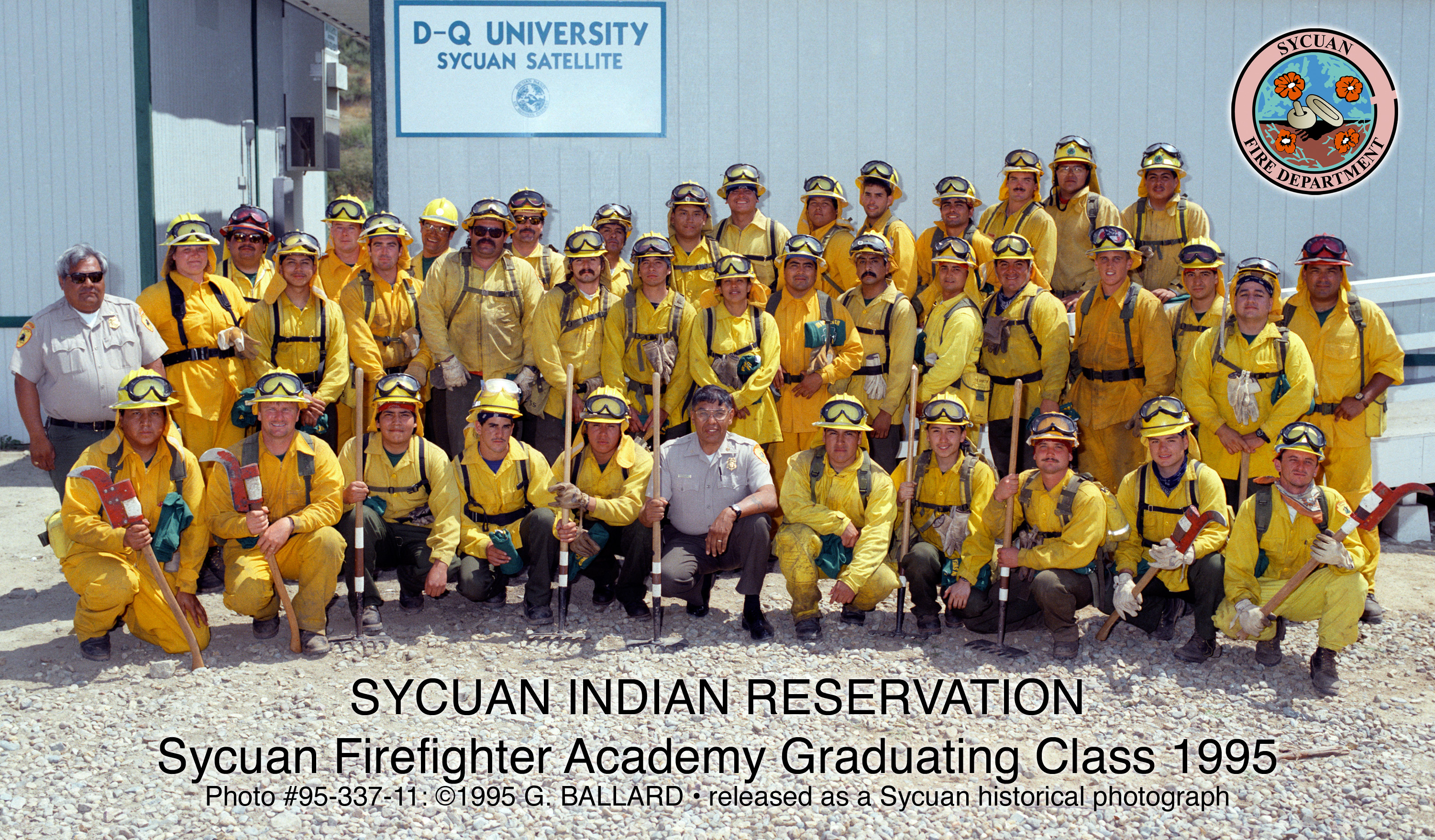 Chief Murphy takes a professional picture with his first fire academy 1995 Sycuan Fire Academy class (detail with Juan Mendez, Zapoteca). Released as a Sycuan historical photo, please CLICK FOR HIGH RESOLUTION 10-INCH IMAGE.