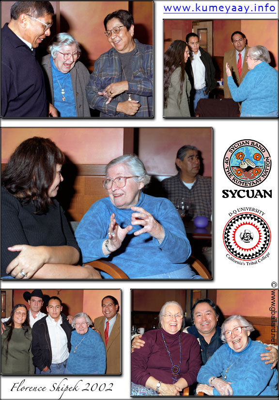 IN LOVING MEMORY: Florence Connolly Shipek, Kumeyaay anthropologist By Chet Barfield January 12, 2003 Anthropologist Florence Connolly Shipek was the nation's top expert on San Diego's American Indians. Over a span of almost 50 years she became an advocate as well, championing legal rights for the region's tribes and tribal members. But mostly, she was a trusted friend. Dr. Shipek attended tribal ceremonies. She was honored at tribal functions. She was pictured in the Union-Tribune in September 2002 in a Viejas ad "saluting our elders." "I loved Florence dearly," Viejas tribal Chairman Anthony Pico said. "She had two passions: One was justice for the Kumeyaay people, and the other was the history of the Kumeyaay people." Dr. Shipek, a widow who lived alone, died Thursday at a local hospital after suffering a fall Wednesday night at her Shelter Island condominium. She was 84. She had been planning to move within days into a Pacific Beach seniors complex to join a scholarly best friend and other retired professors. Her son Carl found her Thursday morning near her bed, conscious but with her legs crumpled beneath her. "By the time we were in the emergency room, she was just gone," he said. Born in Massachusetts in 1918 during a December blizzard, Dr. Shipek was raised by parents who instilled independence, critical thinking, compassion for the downtrodden and confidence in achieving whatever she set out to do. "My mother marched in suffragette parades, and I have apparently been fighting ever since," she penned as the opening line of an unpublished autobiography she had been writing for the past several years. After traveling all over the country as a child, Dr. Shipek studied anthropology at the University of Arizona and became a professor at the University of Wisconsin. She married an oceanographer and moved to San Diego in the early 1950s. Her relationship with local tribes began in 1954 not as a scholar, but a volunteer. She had gone to a meeting of a church group trying to help tribal members who were suddenly cut off from federal support by an act of Congress. She offered to help them through mazes of unfamiliar bureaucracies hospitals, Social Security, schools, courts and continued those efforts for years. In the late 1950s, attorneys working on tribal land claims tapped Dr. Shipek for her anthropology background and tribal contacts. She began taping interviews with elders ages 80 and older, documenting Indian ways and history dating to the 19th century. Her research, which she continued into the 1970s, resulted in two books and made her an expert witness in Indian land-and water-rights cases. Her documentation of tribal lineage helped the Jamul Indian Village gain federal recognition as a tribe in 1981. Dr. Shipek's love for Indian people stemmed from "wanting to help and realizing that she could make a difference," her son said. "She thought they'd been given a raw deal." Museum of Man anthropologist Ken Hedges was introduced to Dr. Shipek by a San Diego State University professor in 1966, when he was writing a book about the Indians' study of plants. She steered him toward a contact at Santa Ysabel who would be key in the research of his book. Hedges remembers her as someone who would "present the Indian point of view in a very forceful way." At one time, Dr. Shipek worked as a volunteer at the Museum of Man. Throughout her later years, Dr. Shipek remained involved in tribal issues. She was often a guest at tribal gatherings and lectured at various forums. News of her death spread quickly Friday throughout the region's tribes, leaving leaders and members shocked and saddened. "It's a great loss, not only for the Indian tribes but for San Diego County," Barona tribal Councilman Steve Banegas said. "She had a wealth of knowledge. She's going to be sorely missed." Tribal elders trusted Dr. Shipek because "she spent a lot of time with them. She paid her dues," Banegas said. "She didn't just take something from them. She would give things back." Dr. Shipek's fiery spirit was manifested in deciding to take on the U.S. government nearly 20 years ago, suing for what she contended was the wrongful death of her husband. He had succumbed to cancer in 1969 after being exposed to nuclear radiation at Bikini Atoll in the Marshall Islands in 1946 and in Nevada in 1952. It was a long battle never resolved. The government filed "appeal after appeal," her son said. "They were just going to outlast her, and they did." Dr. Shipek is survived by her sons, Carl of Point Loma and David of Cody, Wyo.; sisters, Edith Foster of Santa Cruz and Alice Mitchell of La Mesa; and three grandchildren. Memorial services are pending. The family suggests donations to the University of Arizona Foundation / Florence C. Shipek Library Endowment at the University of Arizona Libraries, Tucson, AZ 85721; or to D-Q University at Sycuan, 5478 Sycuan Road, El Cajon, CA 92019. |